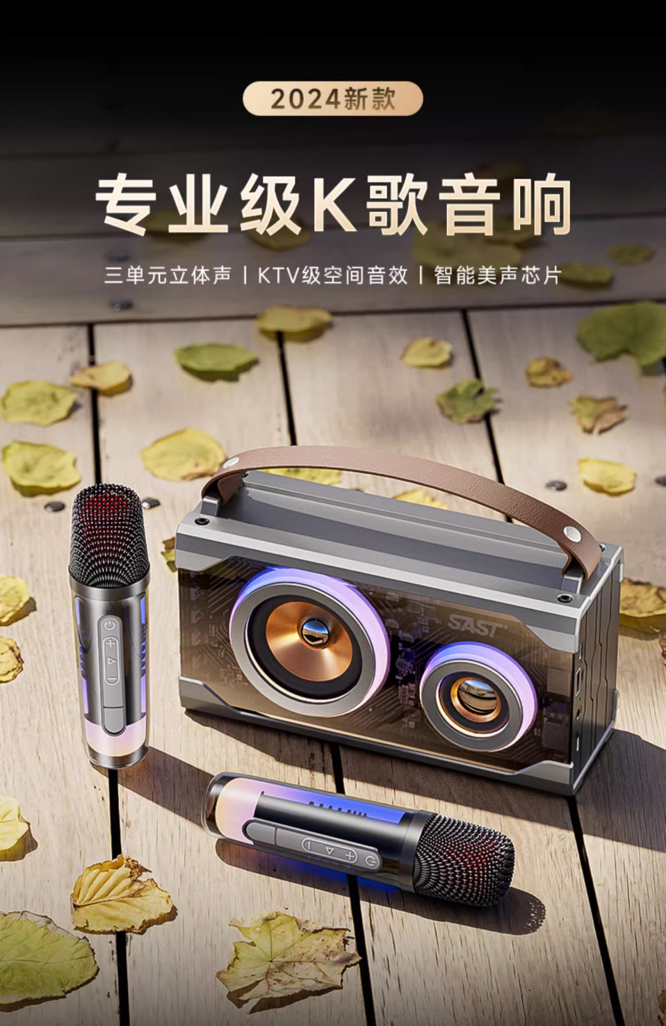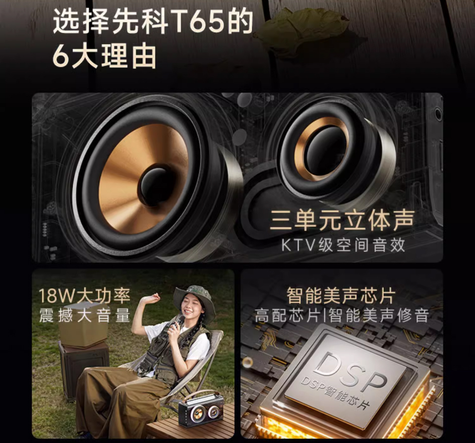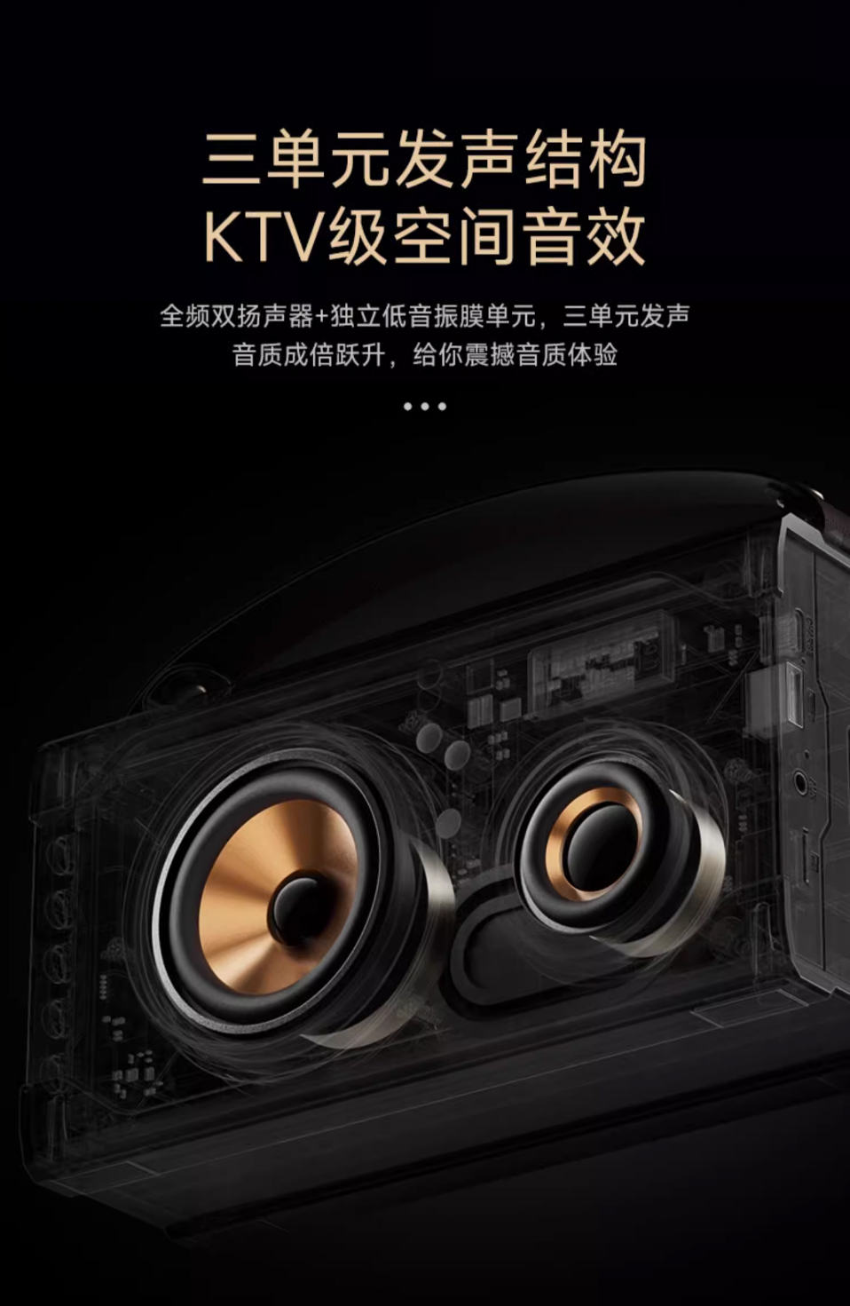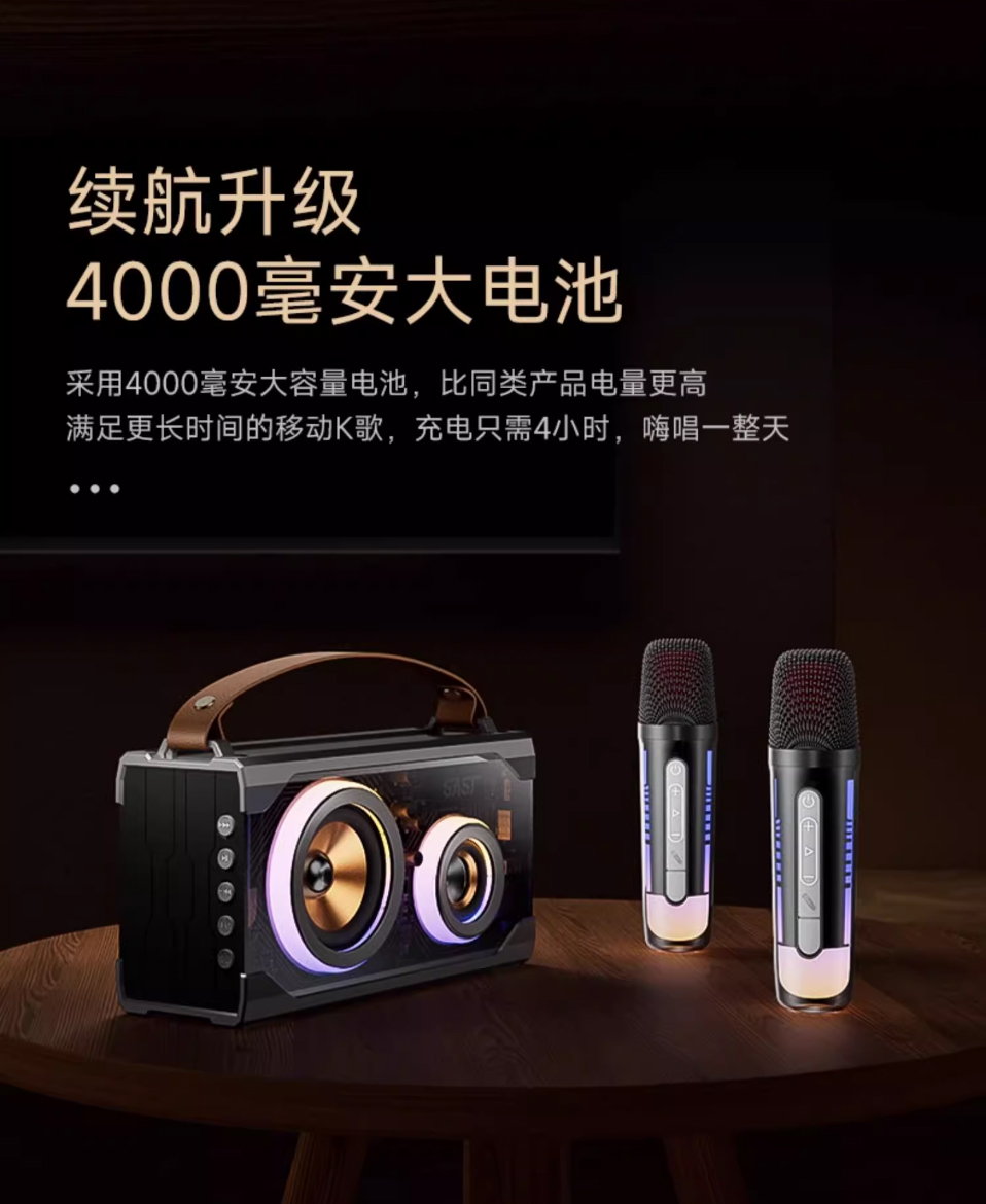 KTV音效,三单元立体声,18W大功率,4000mAh电池长续航