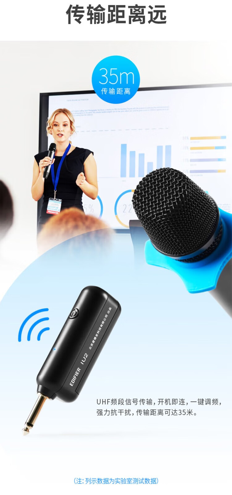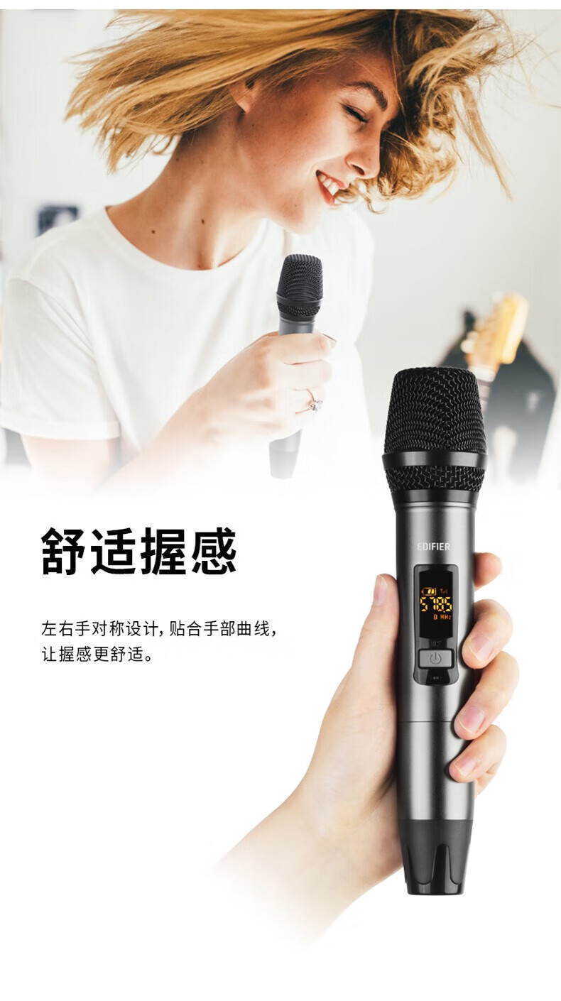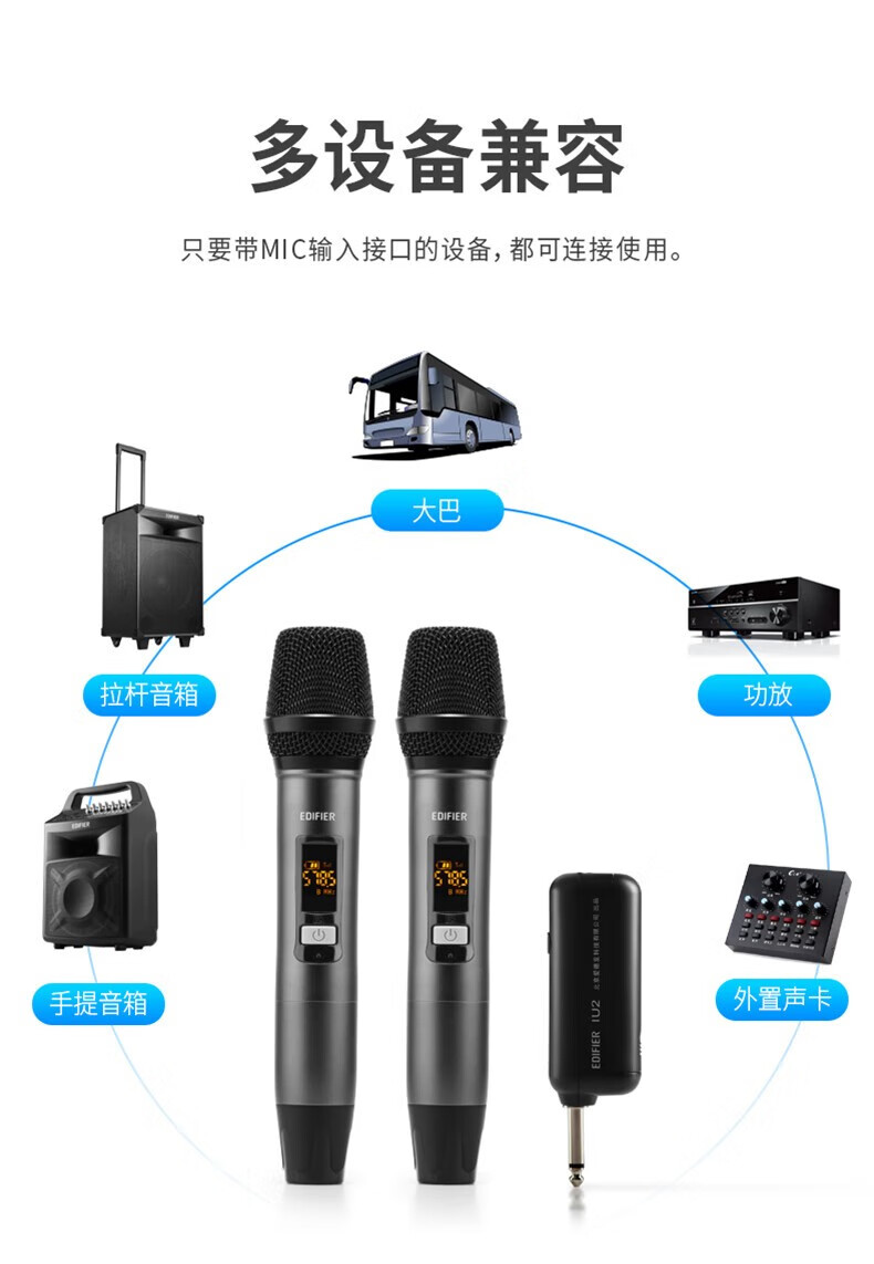 - 漫步者(EDIFIER) IU2充电无线麦克风一拖二话筒U段家庭KTV唱歌演讲舞台会议音箱金属可调频