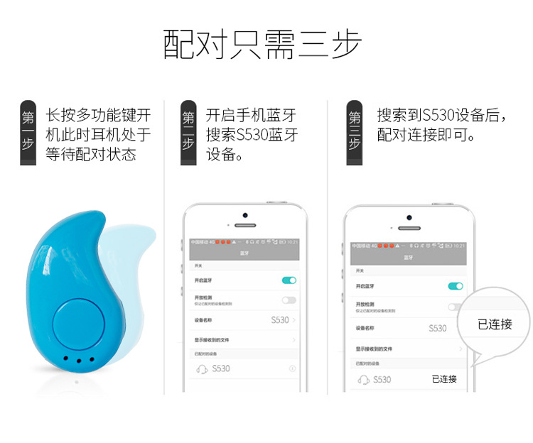 蓝牙耳机无线微型4.1蓝牙耳塞式S530运动迷你立体声入耳蓝牙耳机